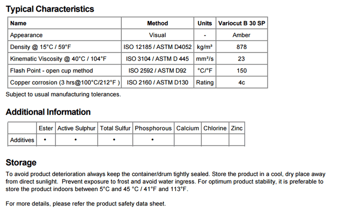 嘉實多Variocut B 30 SP是氯和重金屬游離油性切削油。