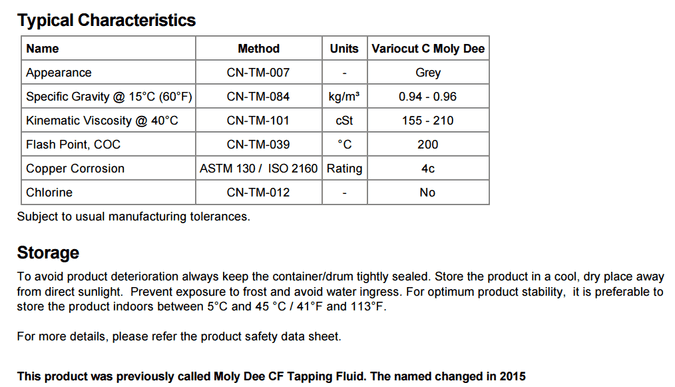 嘉實(shí)多Variocut C Moly Dee(以前稱為called Moly Dee CF Tapping Fluid)是一種高性能的攻絲液