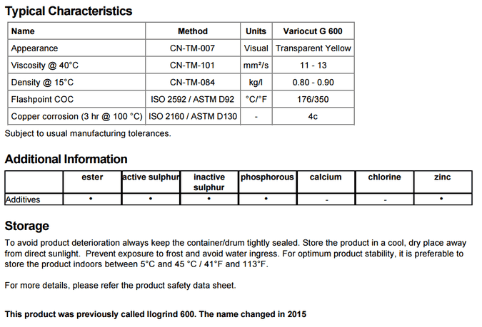 嘉實多Variocut G 600(以前稱為ilogrind 600)是一種無氯切削油。