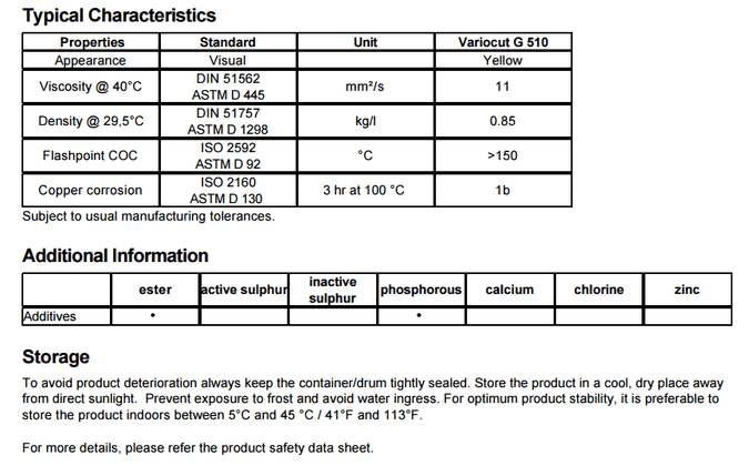 嘉實多Variocut G 510是一個免費氯低粘度油性切削油,它不含重金屬。
