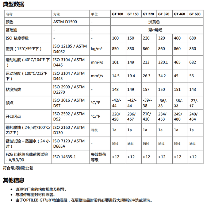 Optileb GT 齒輪油超過DIN 51517 第三部分 CLP 的要求。