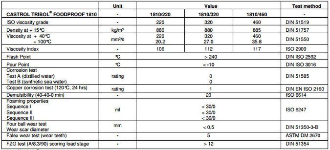 嘉實(shí)多optileb GT 1810/220(以前稱為賽寶foodproof 1810)食品機(jī)械齒輪油性能
