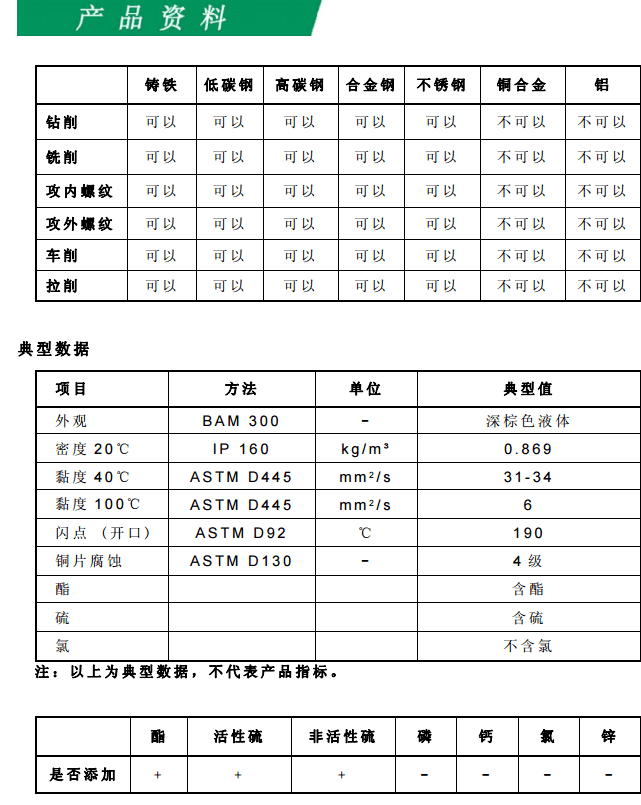 該產品適合于各種高拉力鋼的重負荷加工,它能為加工區域提供極佳 潤滑及冷卻效果。