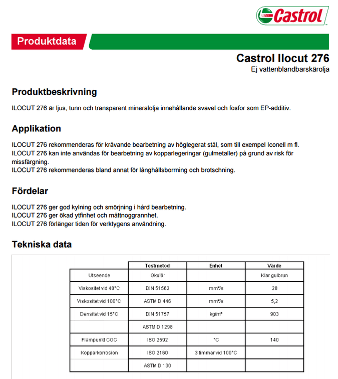ilocut 276推薦要求處理的鋼材,例如iconell M FI。