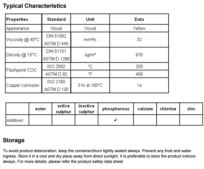 精制基礎油,它還可以用作液壓油符合ISO 6743 / 4型HM和DIN 51502類