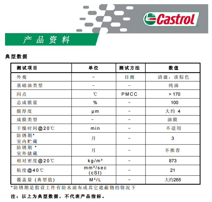 嘉實多 Rustilo T M 630 是一種低粘度短期防銹的防銹油,適用于溶劑型防銹劑禁用的 場合。