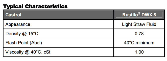 Castrol Rustilo  DWX 8是一個輕的稻草色的含揮發性溶劑