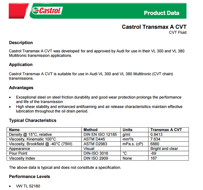 嘉實(shí)多transmax A無(wú)級(jí)變速器奧迪是適合使用在300和VL(VL multitronic無(wú)級(jí)變速鏈)380