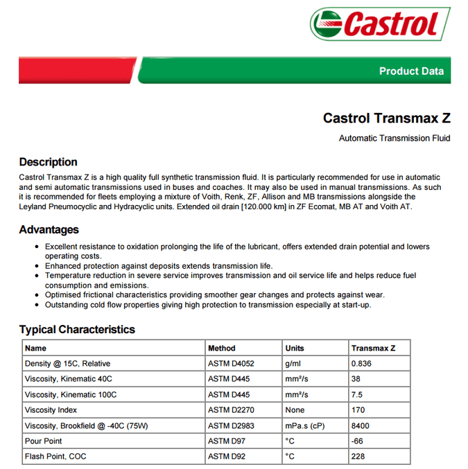 高質量的全合成自動變速箱油液配方提供極限磨損保護性能除®Dexron VI型流體被指定。