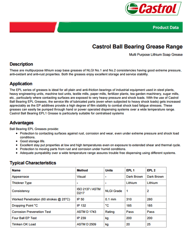 這些都是多功能鋰皂基潤滑脂NLGI 1號和2號一致性具有良好的極壓性,