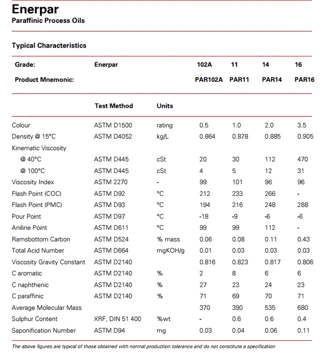 工藝油的enerpar范圍是由溶劑萃取和溶劑脫蠟