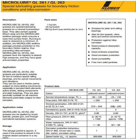 說明:MICROLUBE GL 261,GL 262潤滑脂特別適用于