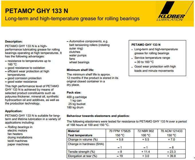 PETAMO GHY 133 N是滾動軸承的長期高溫潤滑脂。 特別是來自它的特點是: