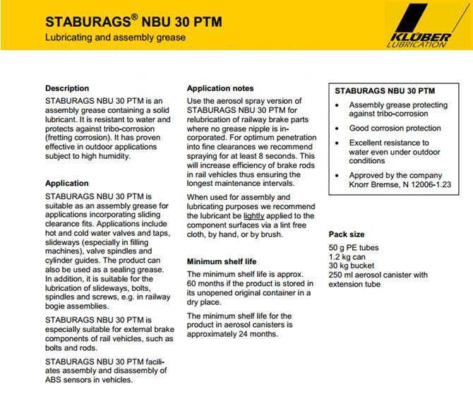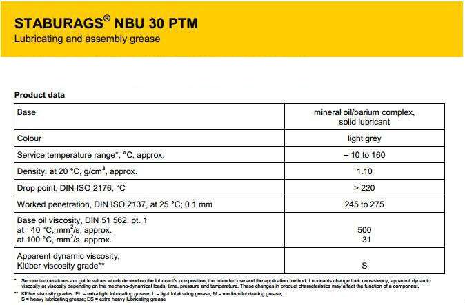 STABURAGS NBU 30 PTM含安裝抗磨損腐蝕的防水潤滑脂是一種固體潤滑劑。 特別有用的戶外天氣條件下的應(yīng)用中的高濕度的影響。