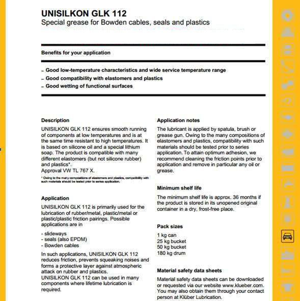 UNISILKON GLK 112主要用于橡膠/金屬,塑料/金屬潤滑塑料/塑料摩擦配對。可能的