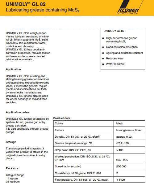 UNIMOLY GL 82是一個高性能的礦物油基潤滑脂鋰皂基和MoS