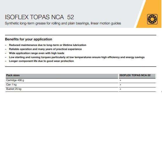 ISOFLEX TOPAS NCA52增加所包含的添加劑磨損保護。