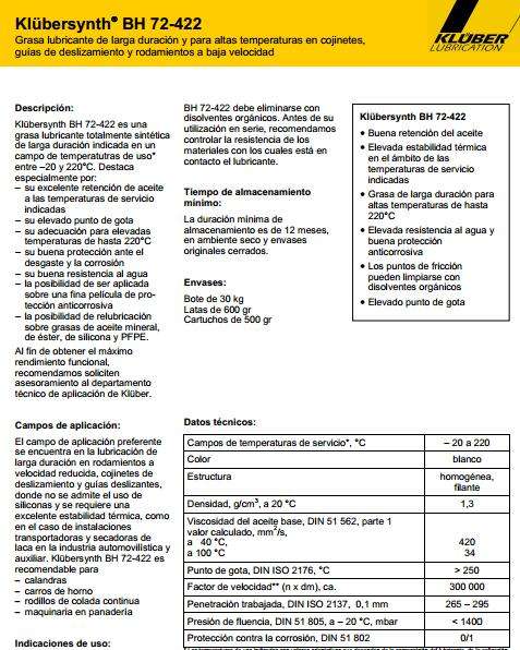 被列在Klubersynth BH72-422領(lǐng)先的制造商的潤(rùn)滑圖表在木板,橡膠和塑料以及