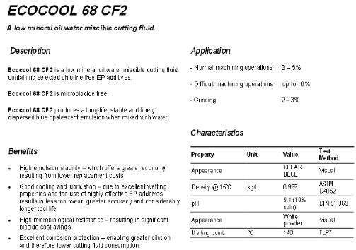 生產長壽命,穩定和精細分散與水混合時,藍色的乳白色乳液。高乳化穩定性-這提供了更大的經濟從而從較低的重置成本良好的冷卻和潤滑-由于優良的潤濕性能和高效的EP添加劑的使用結果在減少刀具磨損,更加準確,大大更長的刀具壽命高微生物的抵抗-在顯著殺菌劑成本原版書優異的耐腐蝕保護-使更大的稀釋因此降低切削液消耗量低發泡。