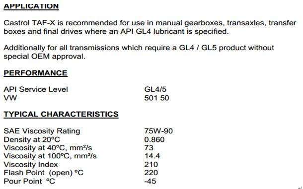 嘉實多CASTROL TAF-X、嘉實多CASTROL TAF-XS詳細說明 (瀏覽2757次)