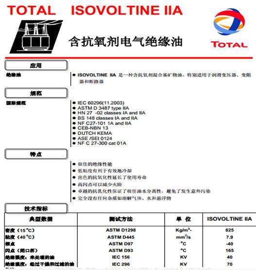 道達(dá)爾含抗氧劑電氣絕緣油 TOTAL ISOVOLTINE IIA詳細(xì)說(shuō)明 (瀏覽2767次)