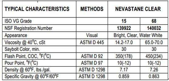 NEVASTANE 15和68均采用USP白色礦物油,NSF上市3H
