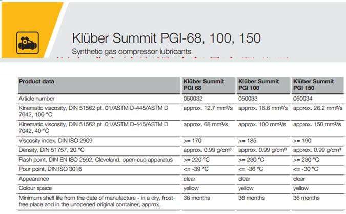 Kluber Summit PGI 合成氣壓縮機潤滑油的基礎上聚亞烷基中國核工業集團公司。 雖然礦物油在高壓的活塞式壓縮機的壓縮的天然氣或烴含有可稀釋工藝氣體容易吸收的氣體的流量和氣體吸收顯著,Kluber Summit PGI 壓縮機油,這樣的效果非常耐。