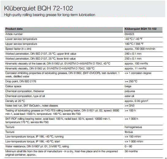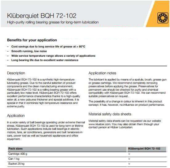 克魯勃Kluberquiet BQ 74-73 N、BQH 72-102詳細說明 (瀏覽2460次)