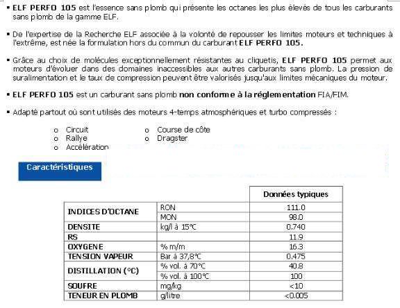 精靈的性能105是一個與任何無鉛高辛烷值無鉛汽油