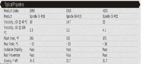 SUNOCO錠子油是高品質,石蠟油潤滑的高速機器元件的設計。這些產品含有優良的防銹和抗氧化性能,是許多機床主軸理想的潤滑油,尤其是磨床。Sunoco的主軸油包含專有的混合無鋅添加劑和乳化劑保護黃色和銀色的金屬及確保設備壽命長。