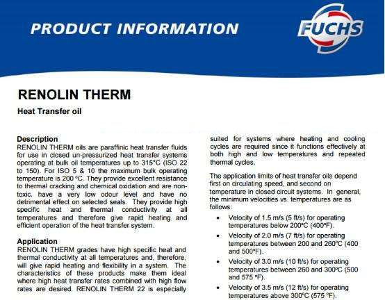 價格是理想的。RENOLIN THERM 22特別適用于加熱和冷卻系統