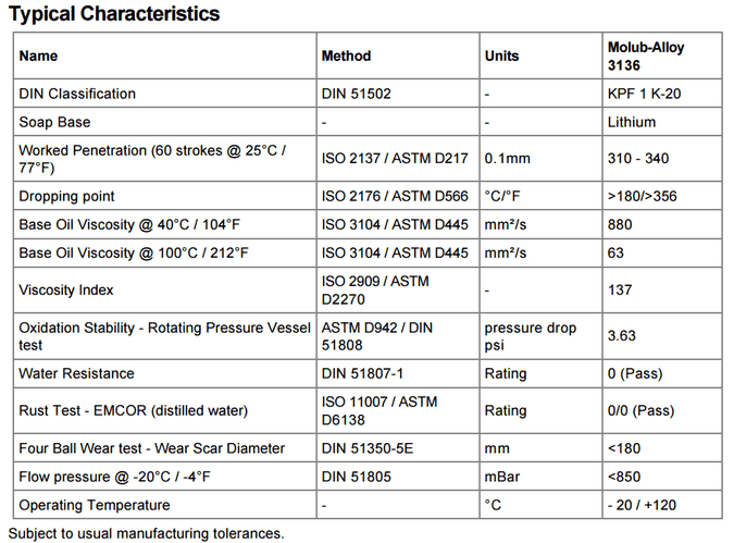 MOLUB-ALLOY 3136不應該混合不同的皂基潤滑脂。