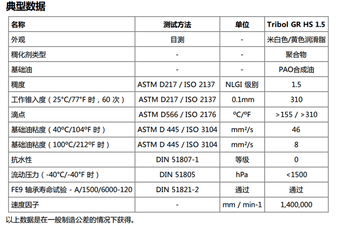嘉實(shí)多 Tribol? GR HS 1.5(原名嘉實(shí)多 Longtime? HS 1.5)是一款合成高性能潤(rùn)滑脂,基于創(chuàng)新的稠化劑技術(shù)。它具有 卓越的機(jī)械和剪切穩(wěn)定性以及出色的抗水、抗潮濕和抗金屬加工液的特性。