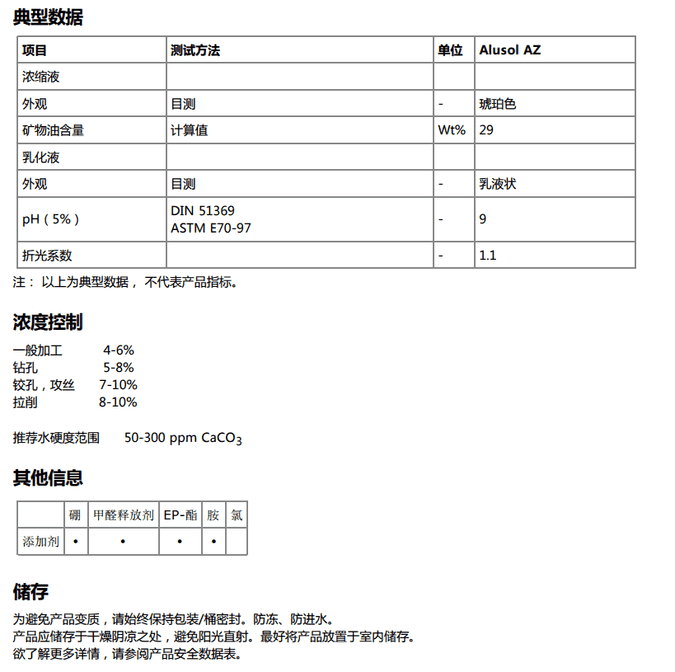 Alusol AZ 是專為鋁合金加工開發的產品,適用于各種嚴苛的加工應用如鉸孔、深孔鉆和攻絲。 該產品也可用于中低合金鋼的加工。