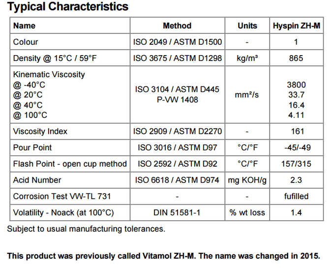 Castrol Hyspin ZH-M(以前稱為vitamol zh-m)是一種特殊的中央液壓流體,具有最高的制定