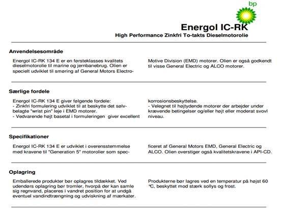 Energol IC-RK 134E柴油機油航運和鐵路應用。