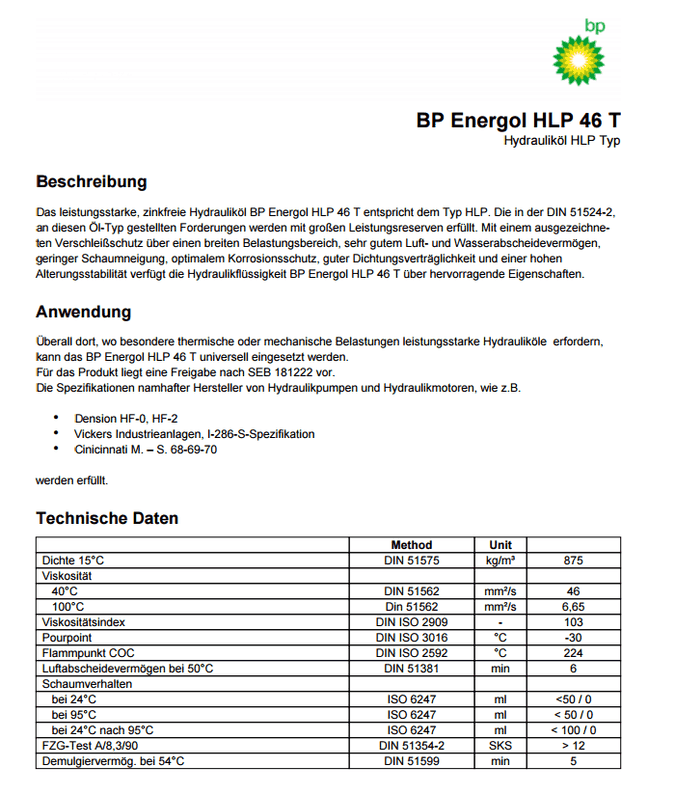 BP安能高液壓油的高,zinkfreie HLP型HLP 46。在DIN 51524 2